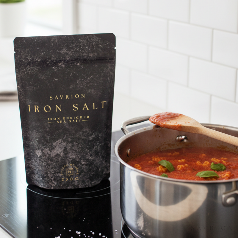 Delicious and nutricious sea salt infused with stable, energy boosting iron for a healthier meal without pills.